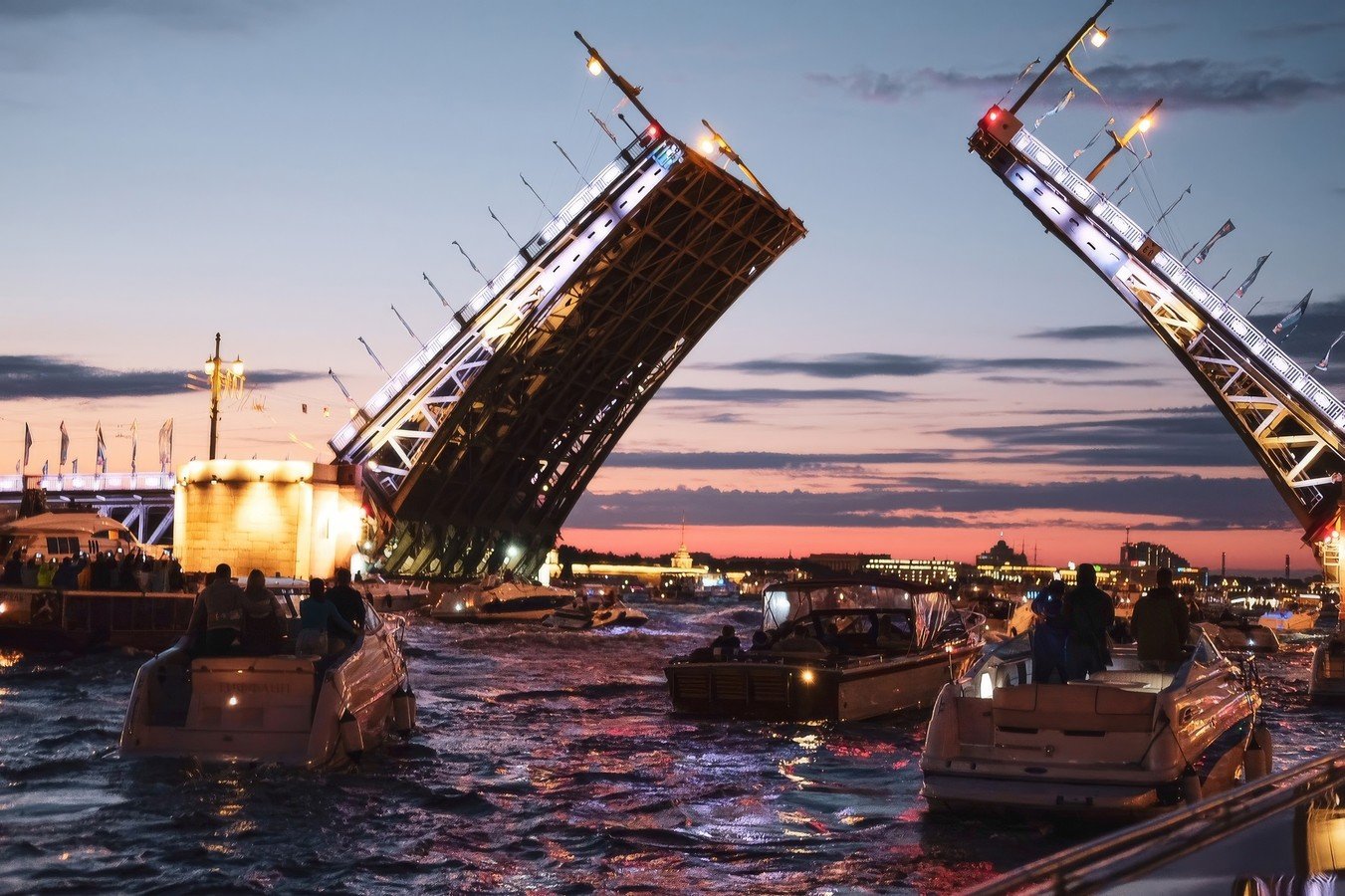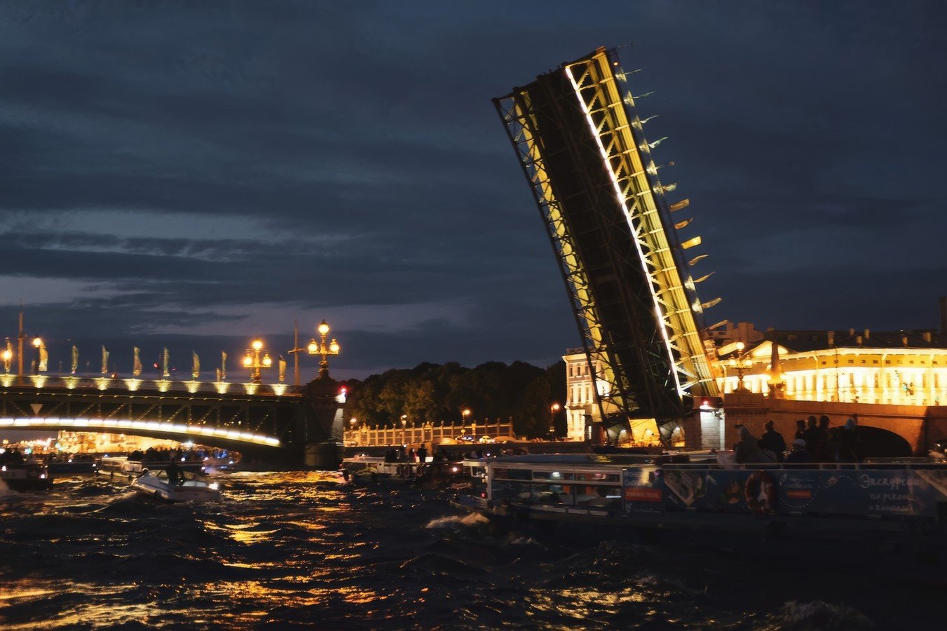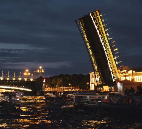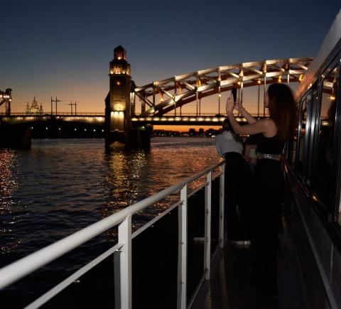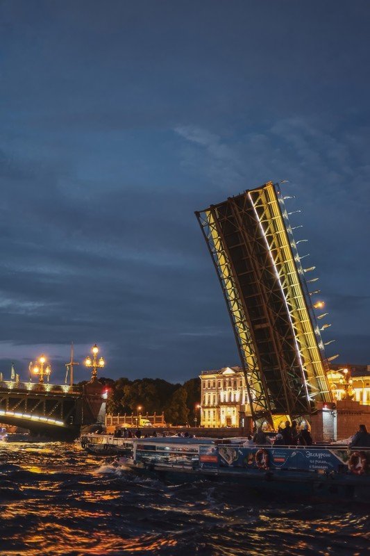 - Развод мостов могут отменить по решению Мостотреста — тем не менее, ночью город прекрасен и экскурсия состоится