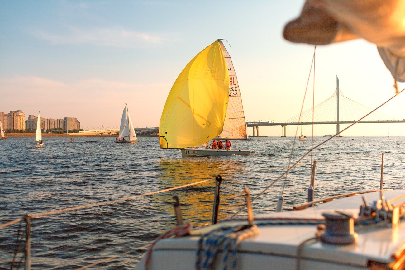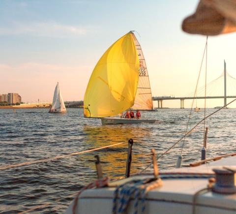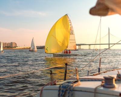 Мы проплывем мимо петербуржских островов: Петровского, Крестовского, Декабристов, Васильевского. Увидим Зенит-Арену, вантовый мост, парк 300-летия Петербурга и «Лахта-центр». Если будет попутный ветер, подберёмся к маякам — створным знакам, — а после отправимся обратно.