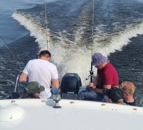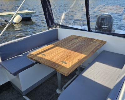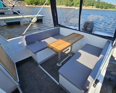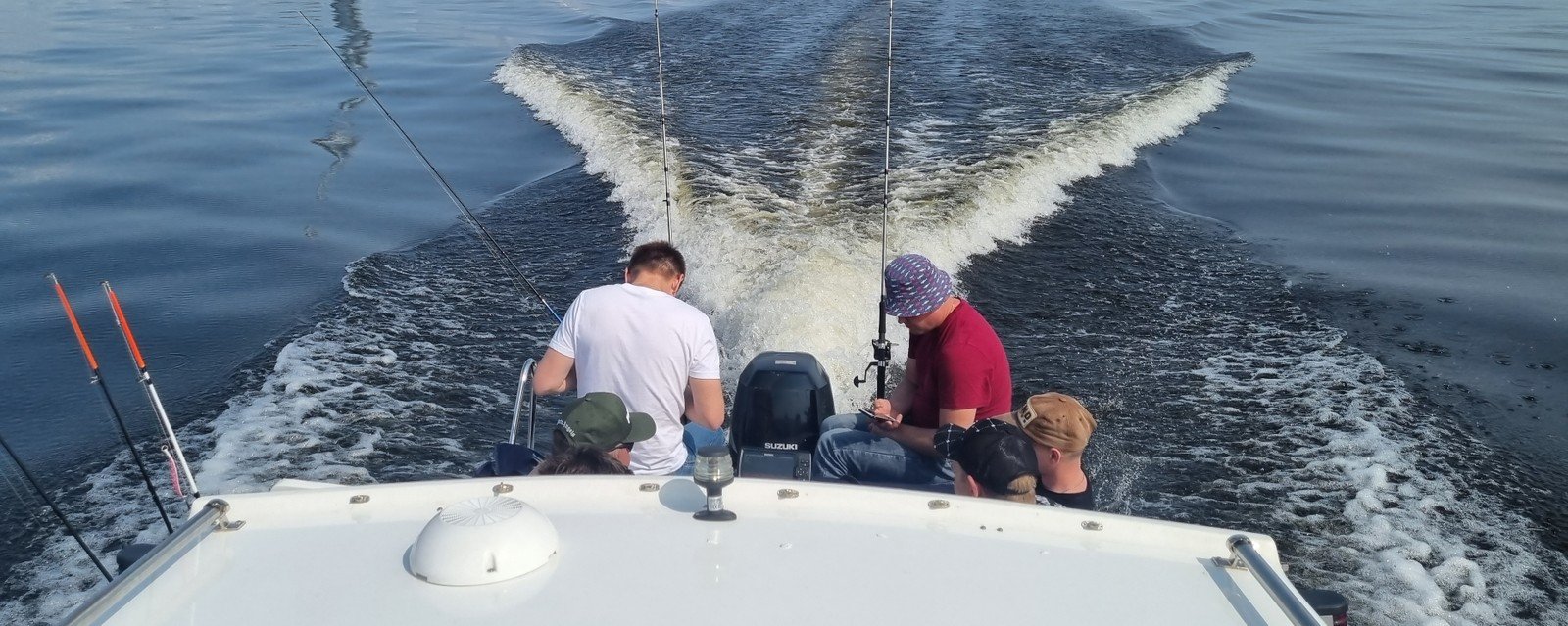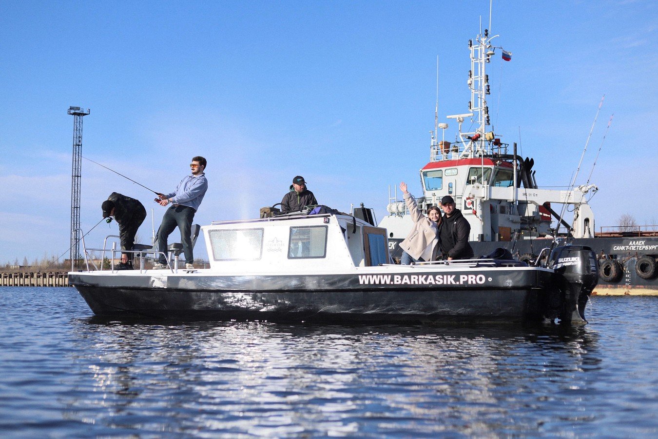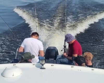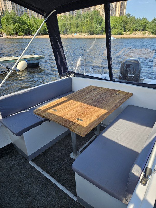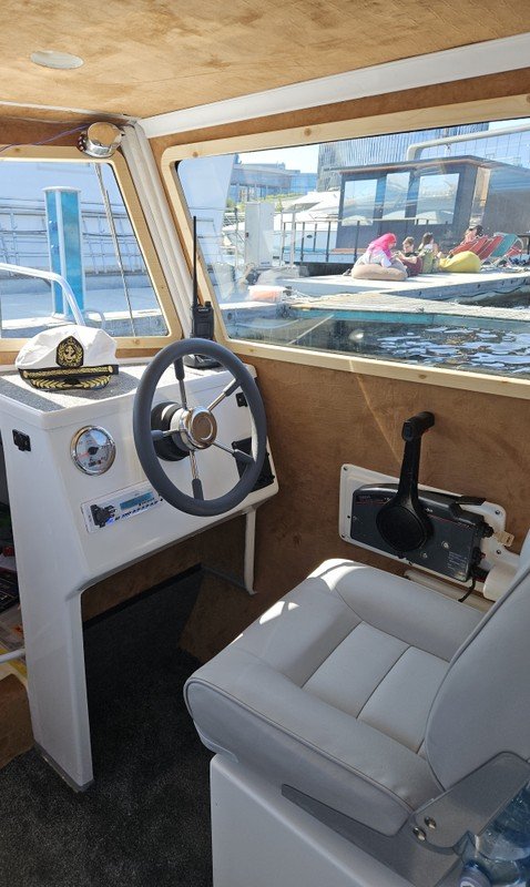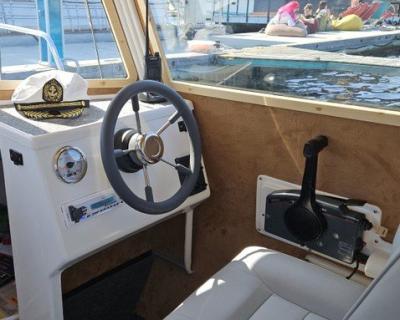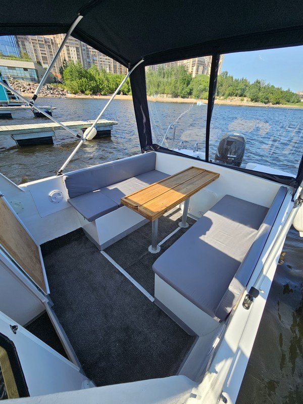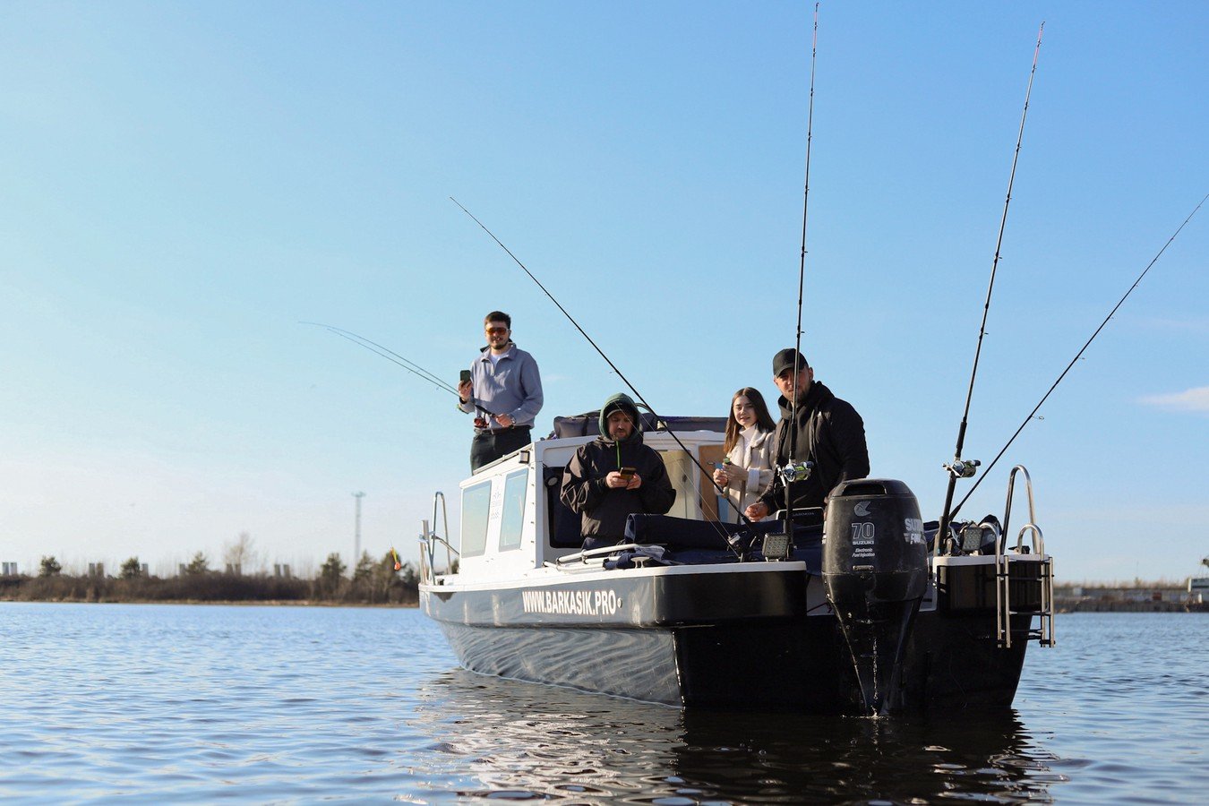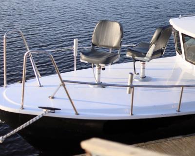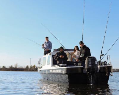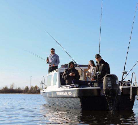 На катере есть всё для вашего удобства: стол, мягкие сиденья, туалет, пледы, крытый тент, музыка и даже матрас для загара на крыше. Большой запалубленный нос, прочная крыша — рыбачить можно с любого места! Для тех, у кого нет удочки, мы предоставим всю необходимую оснастку. Также на борту есть эхолот, стаканы для троллинга. Капитан — профессиональный гид-рыболов со стажем: он проведёт инструктаж и объяснит тонкости рыбной ловли.