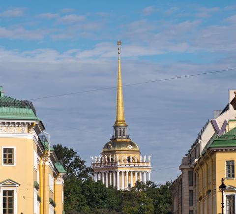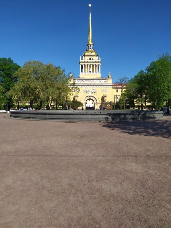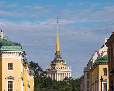 - Далее проследуете вдоль Александровского сада, разбитого на том самом месте, где в широком боливаре разгуливал Евгений Онегин, и рассмотрите одно из старейших учреждений Петербурга — Адмиралтейство