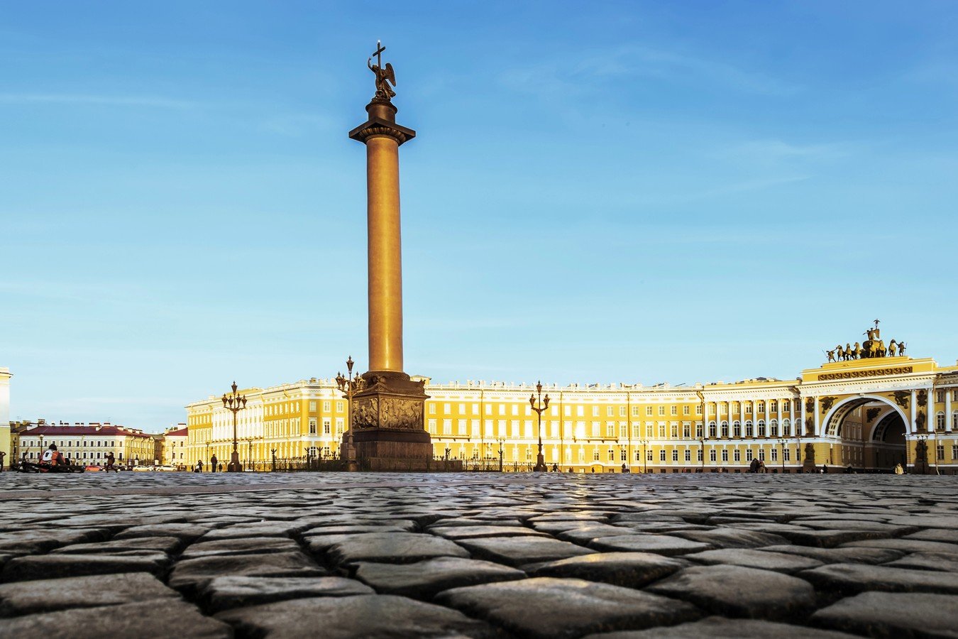 - Сквозь арку Главного штаба вы попадёте на главную площадь города, а некогда и всей страны — Дворцовую. Увидите официальную резиденцию императора — Зимний дворец, и памятник императору-победителю Наполеона — Александровскую колонну