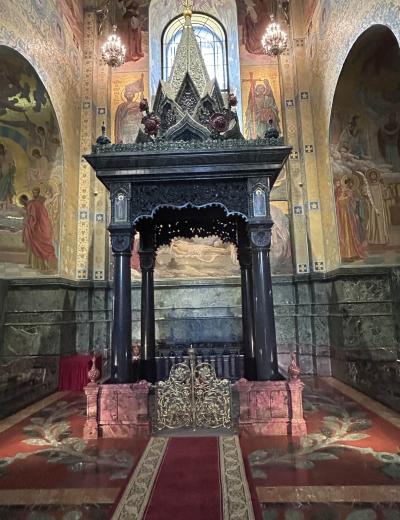 Осматривая храм снаружи и изнутри, вы узнаете историю его возведения и разберетесь в значении названия обители. Выясните, почему здание словно врезается в гладь канала Грибоедова, русло которого пришлось сузить почти на 10 метров. Услышите о семи покушениях на Александра II и легенду о роковом сближении мужчин из рода Романовых с женщинами из семьи Долгоруких. А также познакомитесь с судьбой храма после революции и узнаете об испытаниях, выпавших на его долю во время блокады Ленинграда.