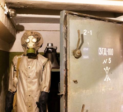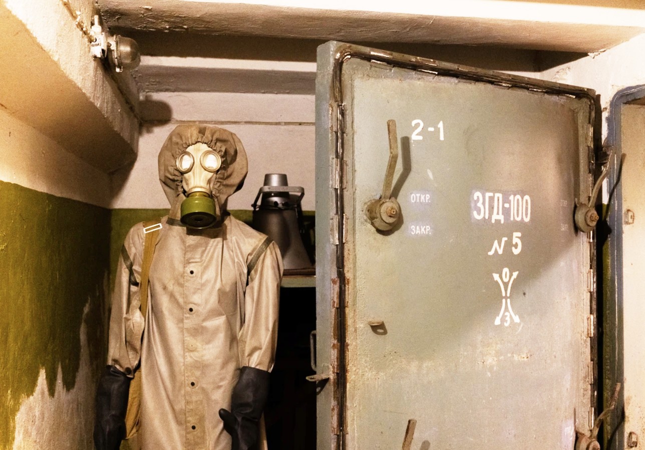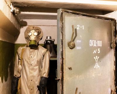 Мы минуем железобетонную оболочку, которая обязана сдержать ударную волну, и окажемся в убежище. Рассмотрим плакаты с инструкциям, дозиметры, противогазы и прочие средства защиты. Люди должны были не только безопасно жить под землей, но и иметь возможность добывать свежую воду, лечиться, выходить на связь. Обсудим, что они использовали: какие фильтры воздуха, источники энергии, способы хранения воды.