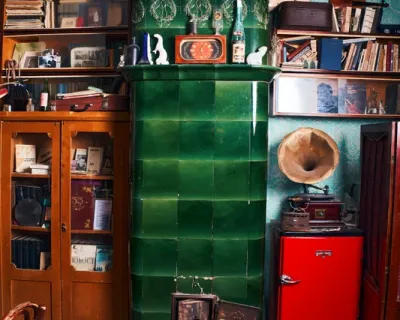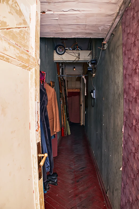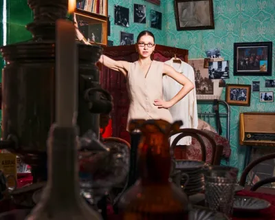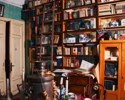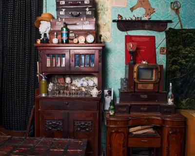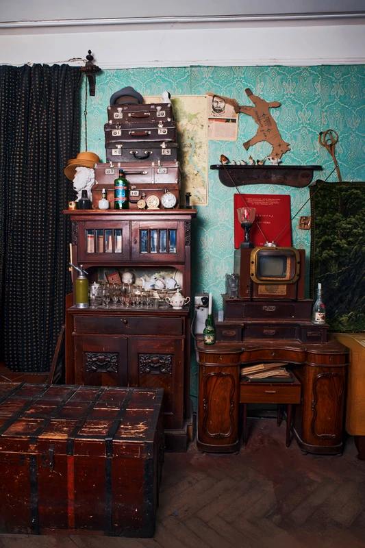 - Комнату, которая была закрыта десятилетиями. На столе — старые фотографии и выцветшие газеты, под обоями — слои начала века, на тумбе — дорожный сундук и редкая корабельная лампа. Чувство, что хозяева вышли на минуту