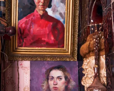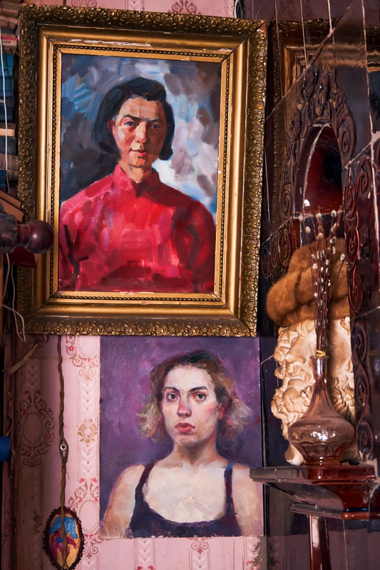 - Двухэтажную мастерскую художницы Ленфильма. Антикварные светильники, мольберты, эскизы, краски, лёгкий запах масла
