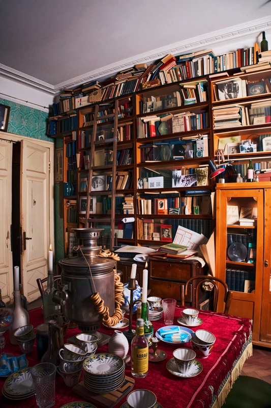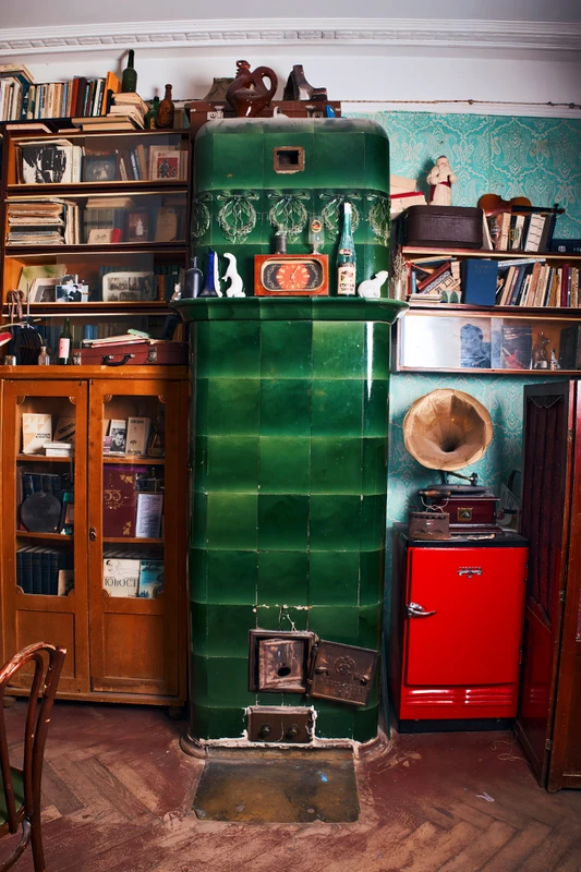 - Комнату Довлатова. Пишущая машинка Underwood, зелёная печь, дисковый телефон, полка с редкими изданиями. Истории о быте 60-х, о Бродском и Рейне