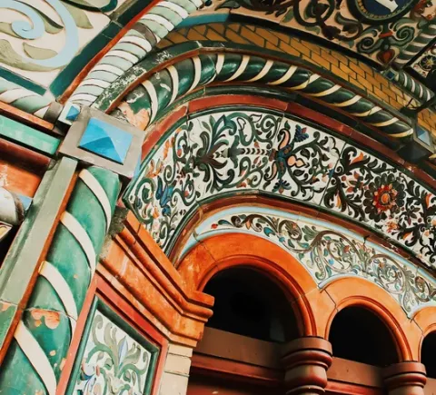 - «Пряничный» дом Никонова. Фасад покрыт изразцами в неорусском стиле — настоящий шедевр архитектуры