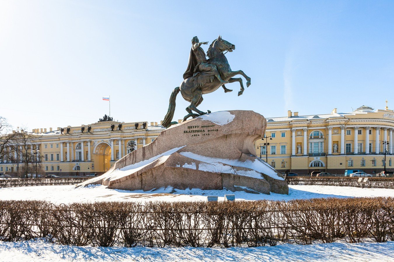 - его главными площадями — Исаакиевской, Дворцовой, Сенатской