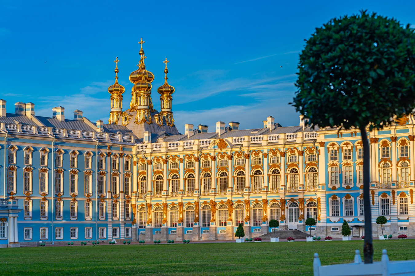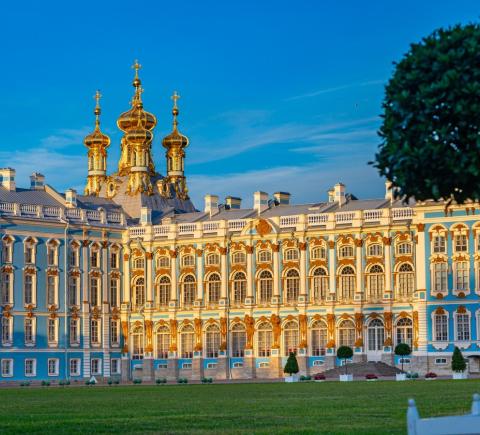 Екатерининский дворец. Это шедевр в стиле барокко, возведённый по проекту Растрелли. Вы зайдёте в знаменитую Янтарную комнату, полностью восстановленную после разрушения в годы Второй мировой войны.