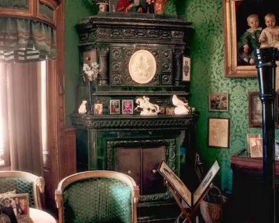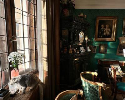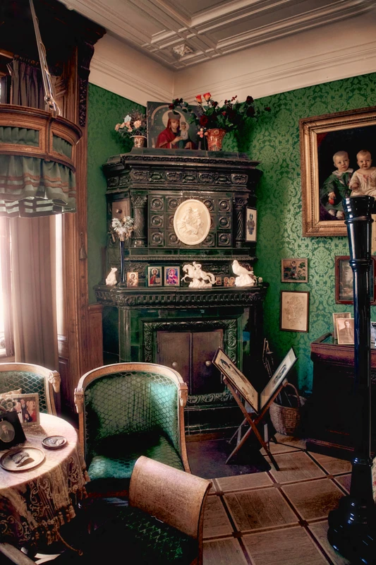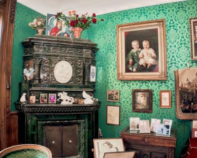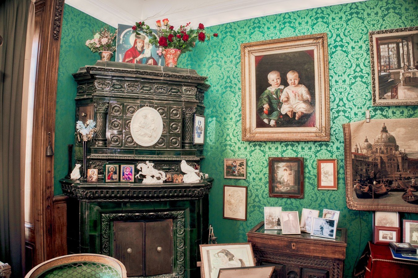 Вы подниметесь по мраморной лестнице старинного дома и войдёте в просторную квартиру. Запах дерева и бумаги, лёгкий дымок от изразцовой печи, мягкий свет — уже с порога ощущается особая атмосфера: вы пришли не в музей, а к семье.