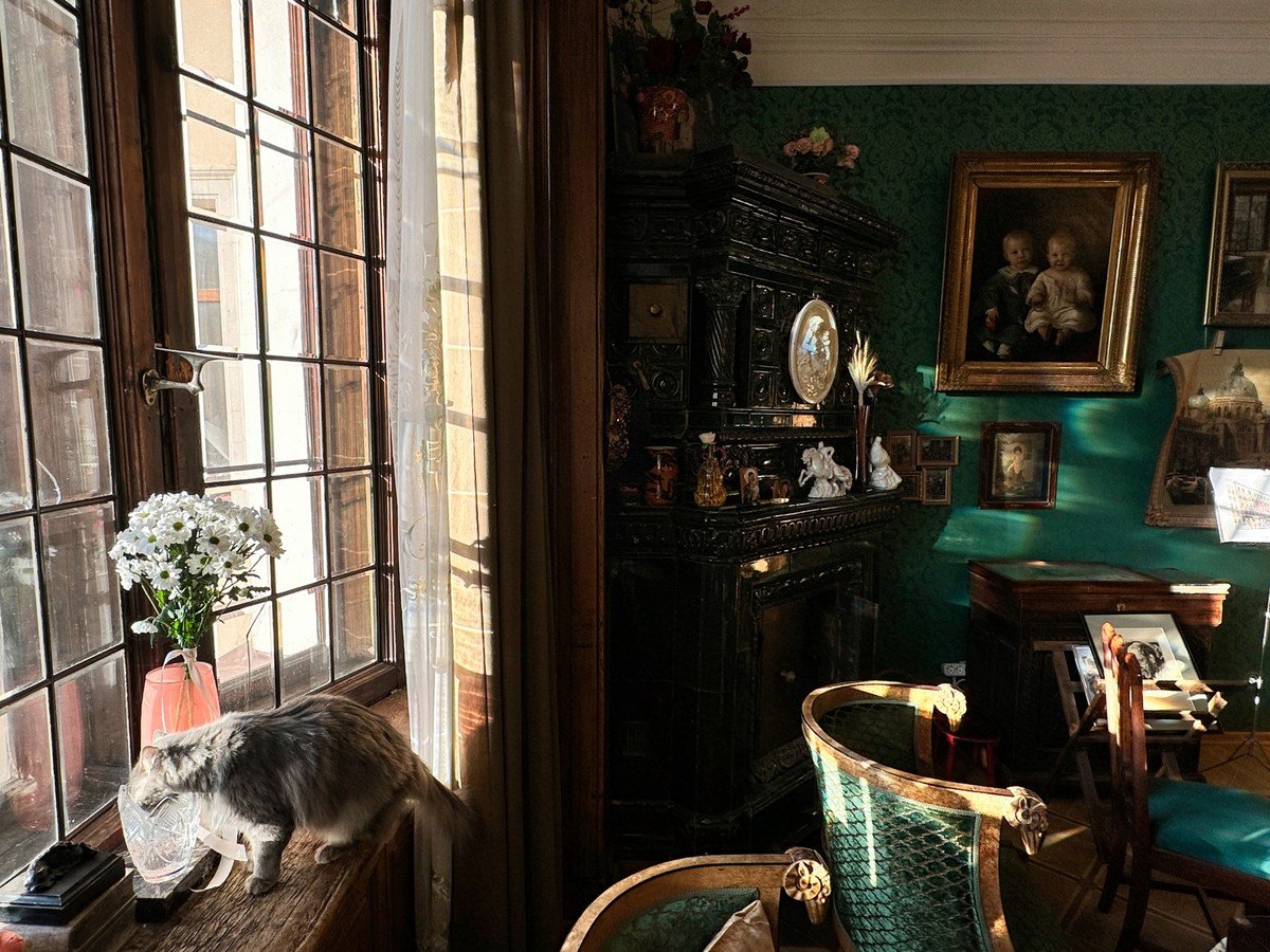 Квартира очень живая, интересные предметы интерьера, разрешается сидеть на старинной мебели и трогать экспонаты. Сделала красивые фото в интерьере.
