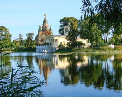 Побывать в английском дворце «Коттедж» и павильонах в итальянском стиле на островах Ольгина пруда