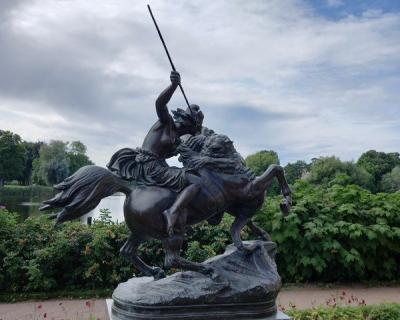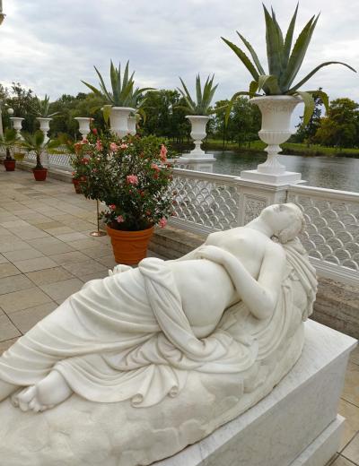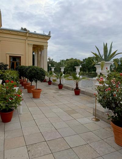 - побываете на рукотворных островах на Ольгином пруду — в Царицыном и Ольгином павильонах. Эти виллы — подарки Николая I Александре Фёдоровне и дочери Ольге Николаевне. Раньше сюда можно было приплыть лишь на пароме, а теперь мы доберёмся по специальным мостикам. Виллы построены на итальянский манер: с галереями, античными скульптурами, фонтанами и садами