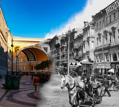 На нашем маршруте: Дворцовая площадь — Невский проспект — Зимняя канавка — дворцы и набережные Мойки и Фонтанки — и многое другое