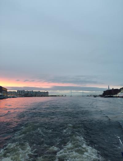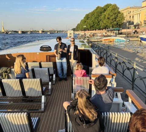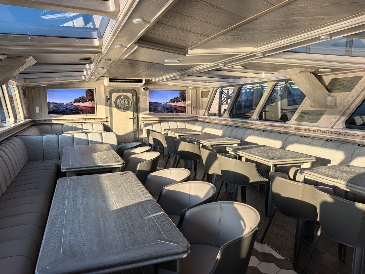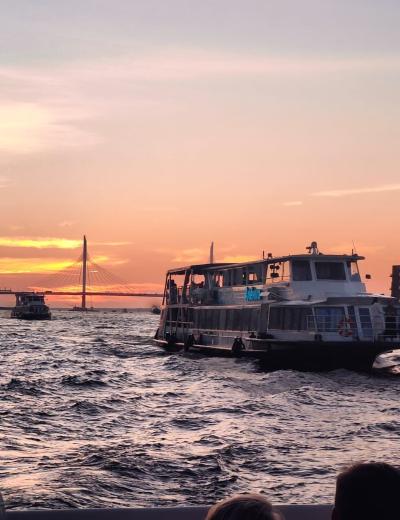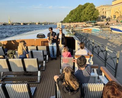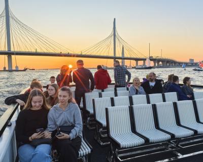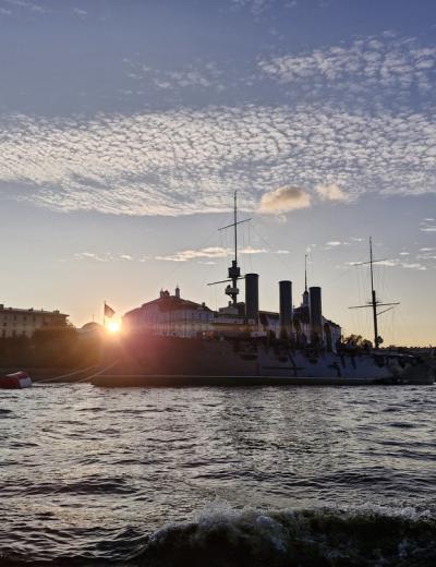 Наш круиз для тех, кто ищет необычные и познавательные водные прогулки! На новом теплоходе вы совершите вояж от Медного всадника до крейсера Аврора, от Чёрной Речки до Северных островов. Под звуки саксофона полюбуетесь закатом на Финском заливе: чтобы «поймать» солнце, каждый вечер мы отправляемся в разное время. И конечно, не заскучаете в компании опытного гида.