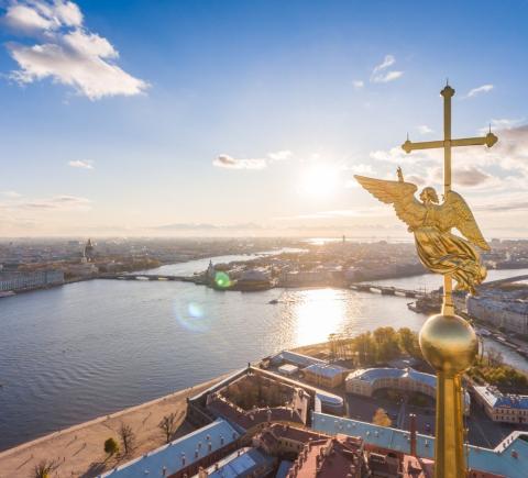 Город откроется вам с высоты птичьего полёта в сопровождении стихотворений современных поэтов. Всё как на ладони: крыши зданий, купола соборов, улицы и реки. Кажется, ещё мгновение — и вы сможете коснуться фигуры ангела на Александровской колонне. Такая близость к недоступным красотам Петербурга поражает, а поэтический ряд усиливает впечатление. Длительность: 15 минут.