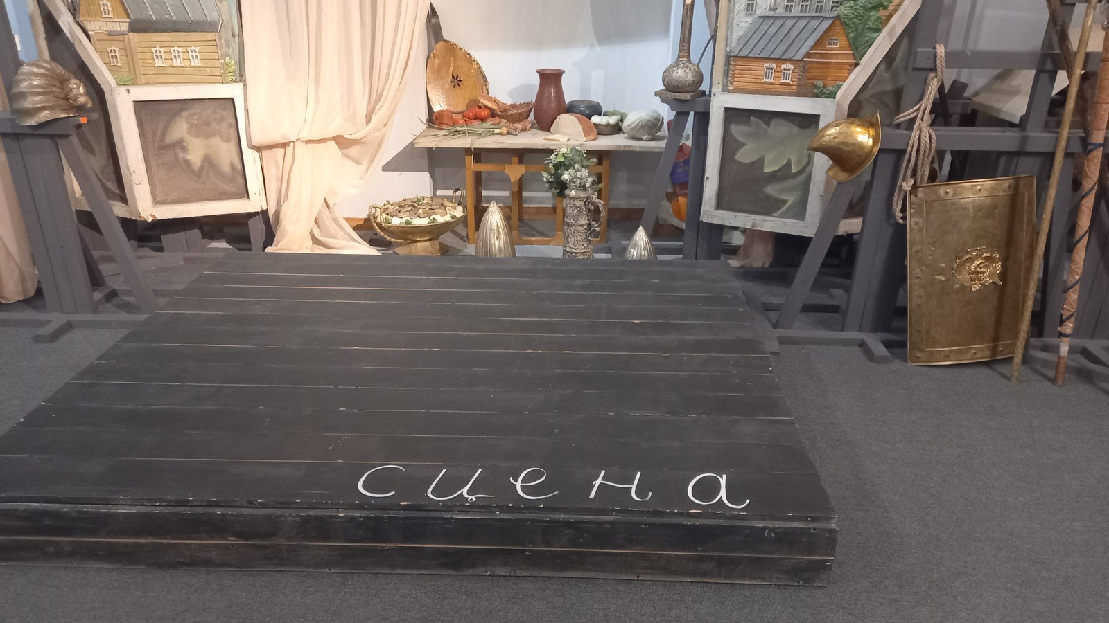 Гвоздь программы как для детей, так и для взрослых — шумовая машина! После краткой инструкции о том, как она работает, вы сами ненадолго станете звукооператорами: включите шум моря или звук прибывающего поезда. Смельчаки смогут побывать на сцене — представить себя в роли актёров и в театральном инвентаре сделать атмосферную фотографию.