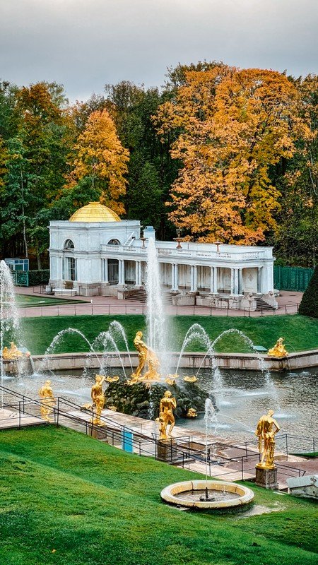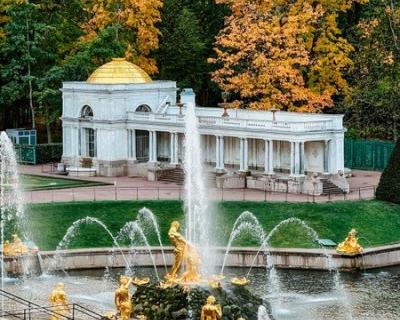 Придворцовая часть парка. Во время прогулки вы зайдёте в один из малых дворцов («Марли», Екатерининский корпус) или музей (павильон Эрмитаж, Гроты) — выбор локации на усмотрение гида и в зависимости от ситуации.