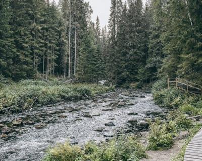 12:30 — прогулка по красивому экомаршруту в долине водопадов Лумиваара и посещение оленьей фермы