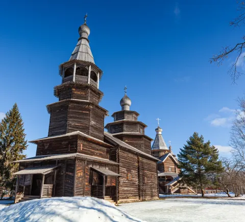 Прогулка по музею под открытым небом, знакомство с традиционной деревенской архитектурой и бытом.