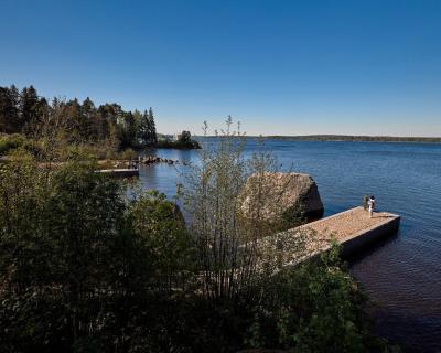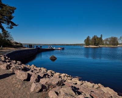 Часовая прогулка на комфортабельном катере по заливу. Вы полюбуетесь панорамами парка «Монрепо» с его уединёнными бухтами и гранитными скалами.