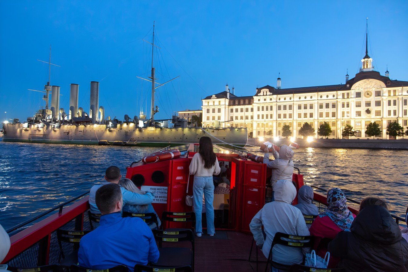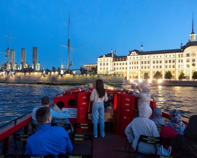 Теплоход пройдёт по Неве и через её дельту приблизится к Финскому заливу. Вы полюбуетесь как парадной частью исторического центра Санкт-Петербурга с его дворцами и must-see-местами, так и современными объектами города, парками и набережными. А аудиогид расскажет об архитектуре, мостах и интересных фактах развития городской инфраструктуры.