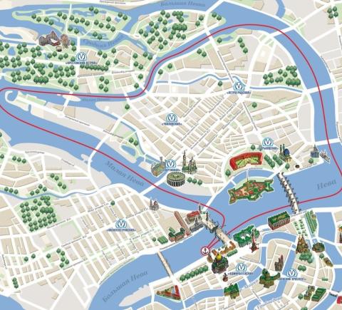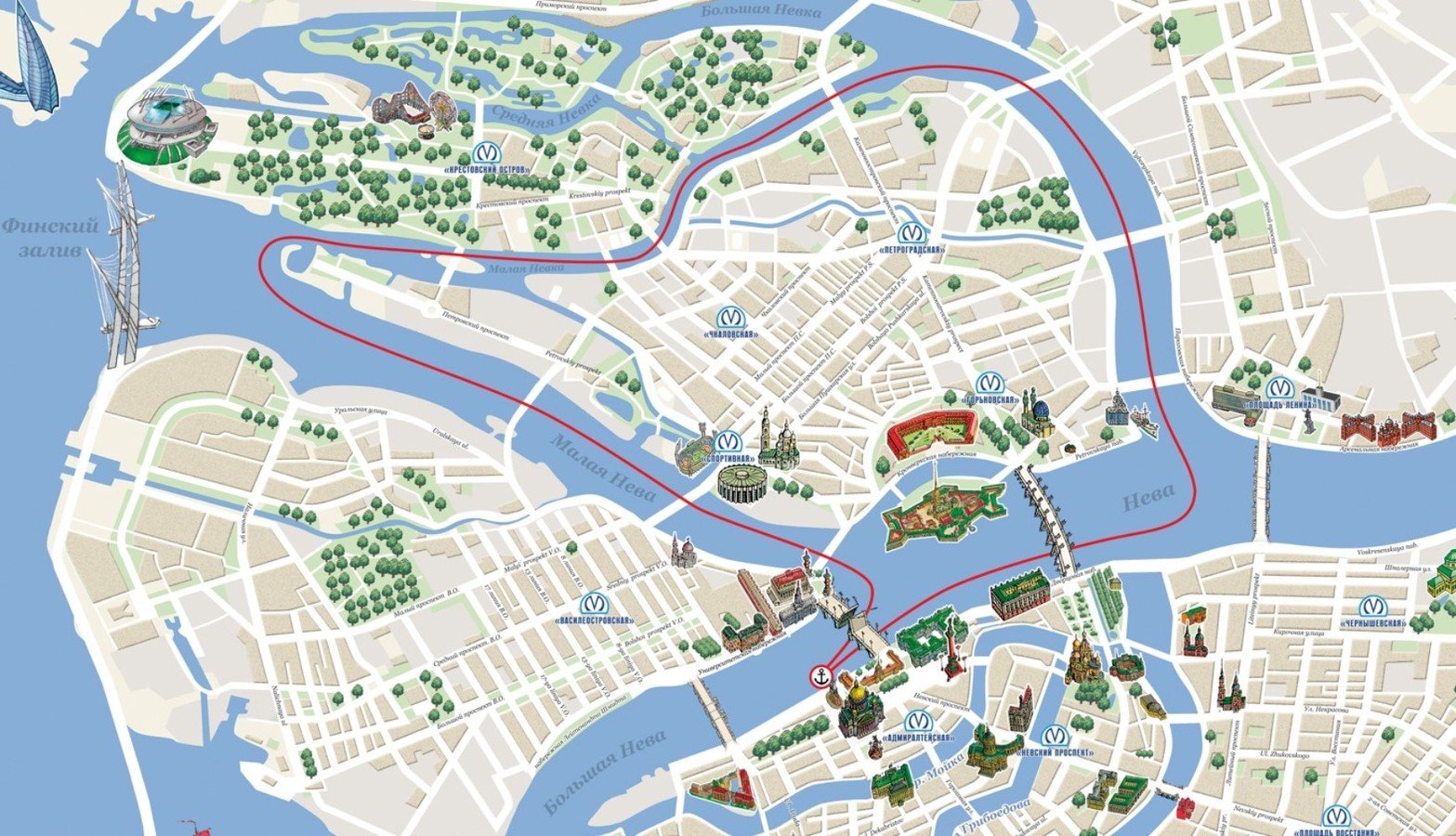 Медный всадник — Петропавловская крепость — крейсер «Аврора» — «Зенит Арена» — Медный всадник