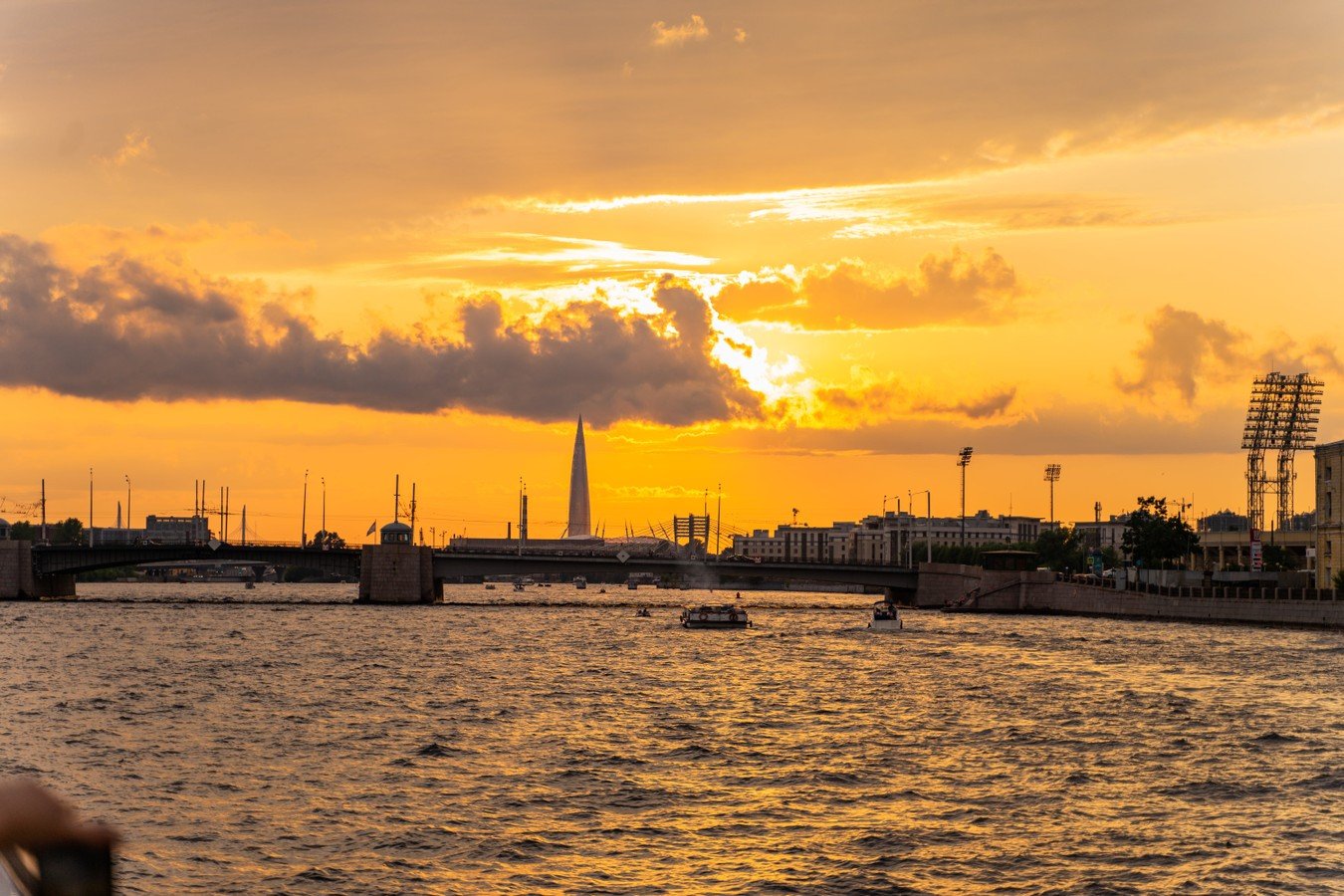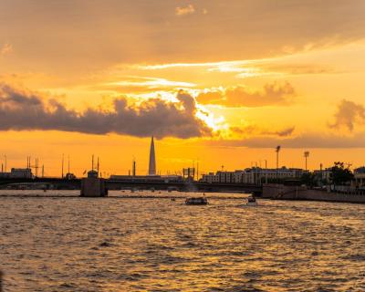 - Закат над Невой. Отправление запланировано на время захода солнца — лучший момент, чтобы увидеть Петербург в его самом живописном облике