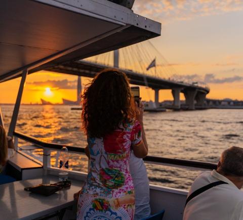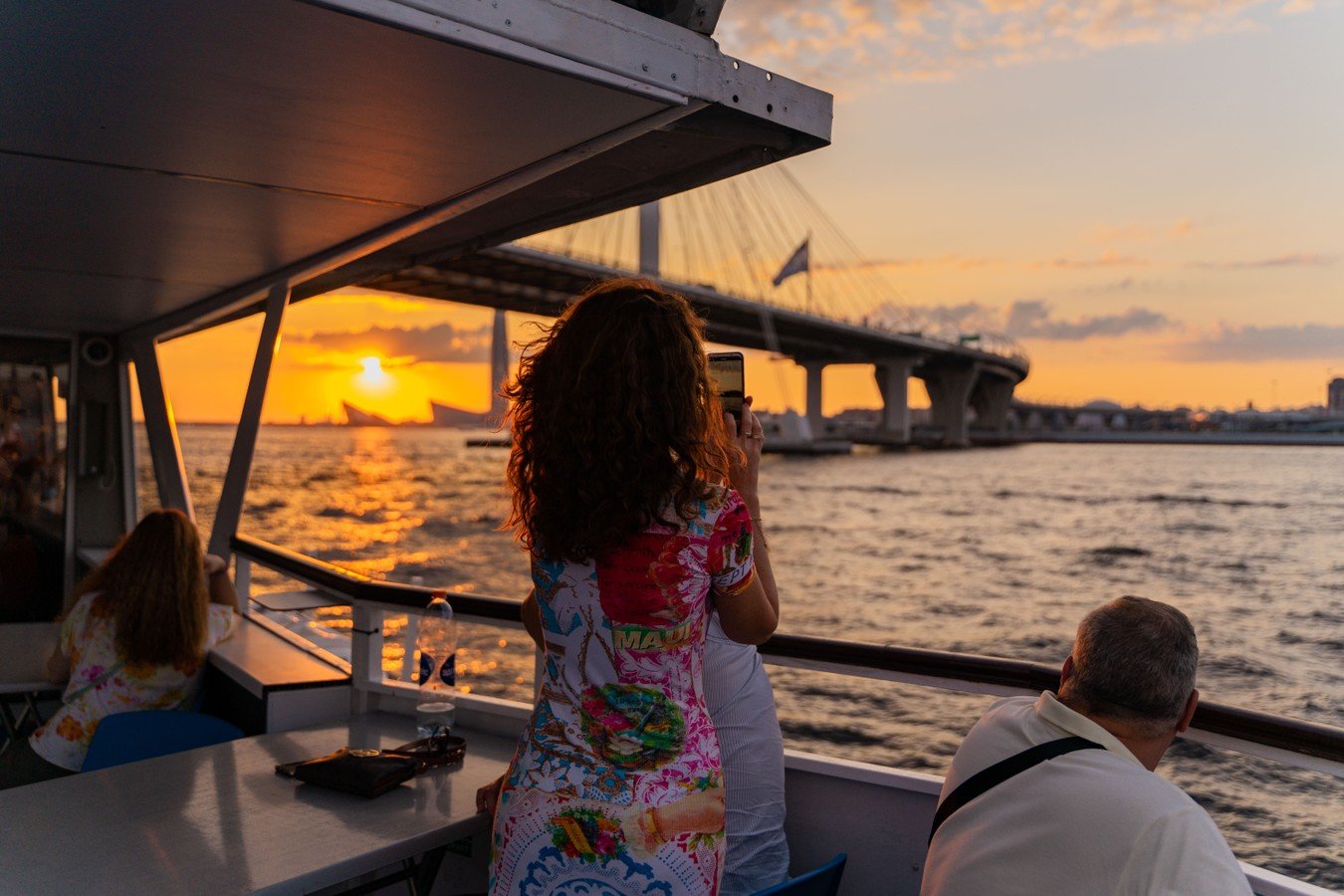 Когда солнце медленно опускается за горизонт, а город наполняется золотистым светом, из центра Петербурга стартует наш теплоход. Маршрут идеально подойдёт тем, кто ищет спокойствия и хочет больше узнать о городе. На открытой верхней палубе — расслабляющая музыка и тёплый бриз. А внизу, в уютном зале с панорамными окнами, есть возможность отдохнуть в тишине и полюбоваться видами города.