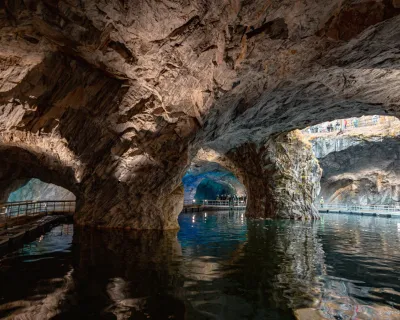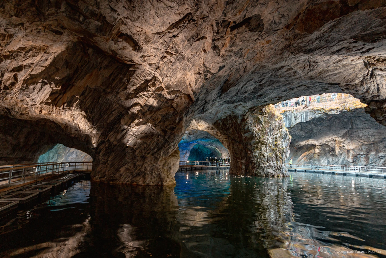 - Горный парк «Рускеала». Главная точка дня — Мраморный каньон. Вас ждёт экскурсия с местным гидом и свободное время, чтобы пройтись по Итальянскому карьеру, увидеть штольни или испытать адреналин на троллее над бездной. Вечером (в холодный сезон) скалы окрасятся художественной подсветкой