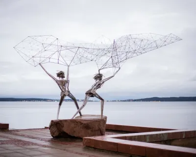 - Онежская набережная. Утро начнётся в столице Карелии. Мы прогуляемся у воды, осмотрим необычные скульптуры — подарки городов-побратимов и загадаем желание у Дерева желаний