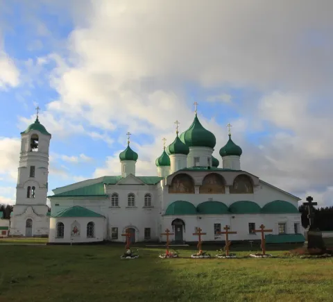 - Александро-Свирский монастырь. Финальной точкой станет белокаменный монастырский ансамбль 16 века — один из самых красивых и почитаемых в стране