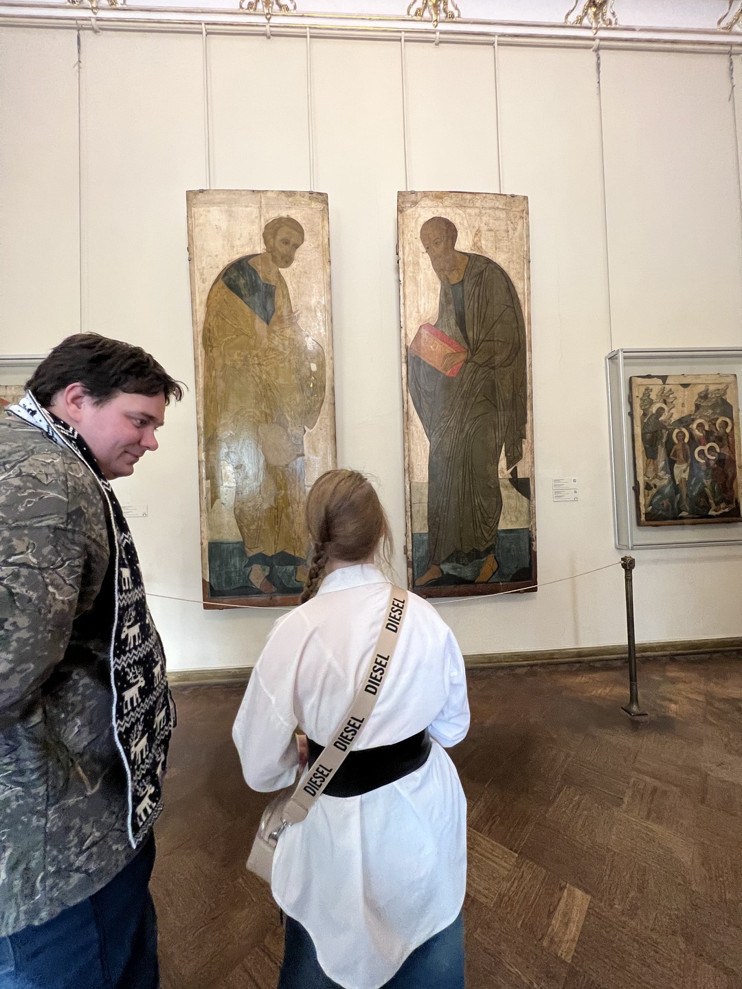 Маршрут начинается на лестнице первого этажа и проходит через зал икон, древнерусского искусства, художников 19-20 веков (Айвазовский, Кипренский, Рерих) и скульптур. К знакомству с ними мы подойдем разными способами: